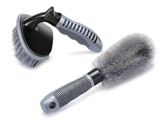 2 Pc Tire & Wheel Cleaning Brush Set for Vehicles (Rim & Hub)