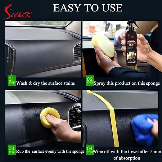Car Dashboard Polish & Dresser, Restores Gloss & Protects from UV Rays (200ml with Sponge Pad)