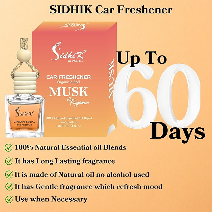 • MUSK FRAGRANCE: Infused with a warm, sensual, and slightly sweet MUSK scent that creates a soothing and inviting atmosphere inside your vehicle.