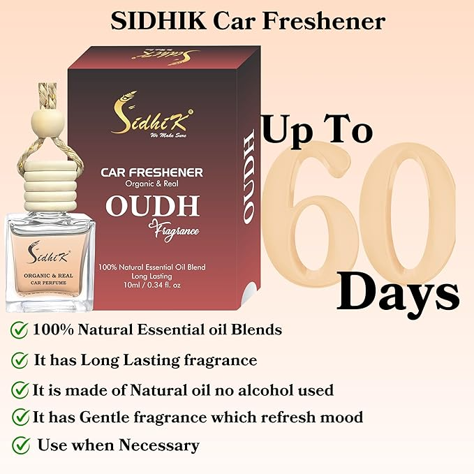 Hanging Car Air Freshener & Perfume Diffuser, Oudh Fragrance (10ml, Pack of 1)